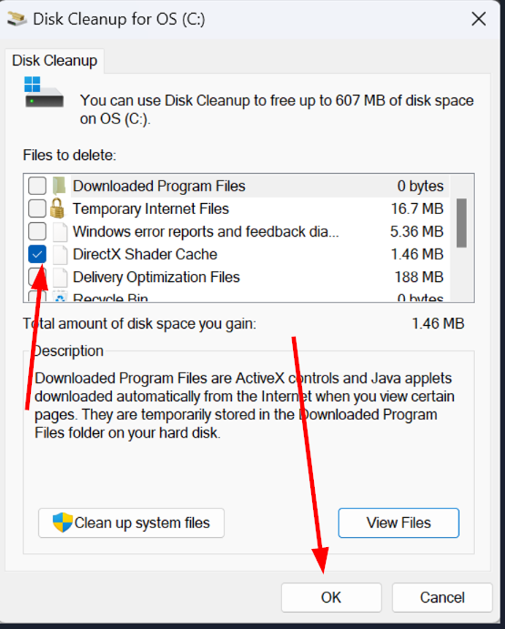 8. 新しいウィンドウで「DirectX シェーダーキャッシュ」の横のボックスにのみチェックを付ける。