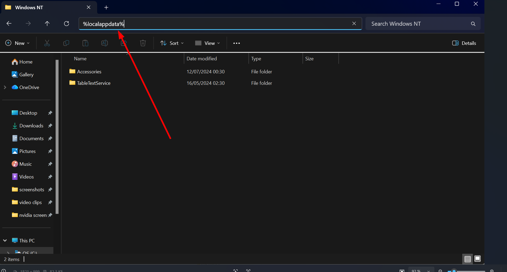 10. ファイルエクスプローラーを開き、アドレスバーに「%localappdata%」と入力してEnterを押す。「...\AppData\Local\」のフォルダが開きます。