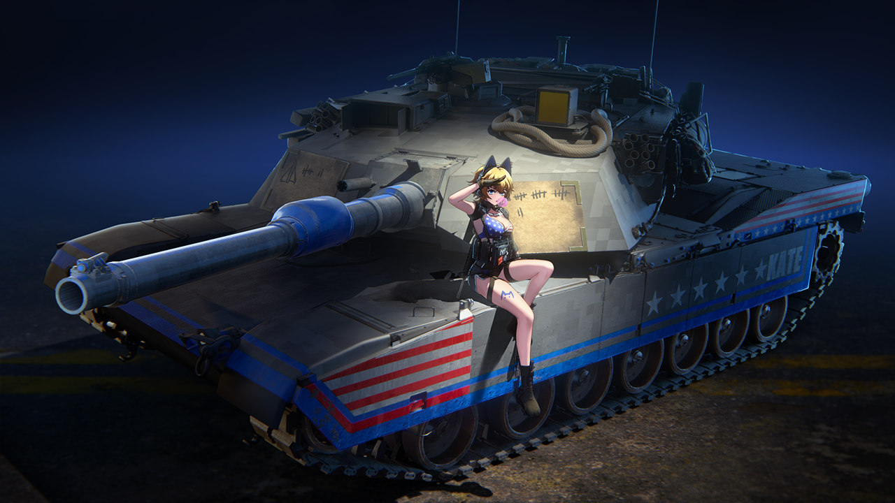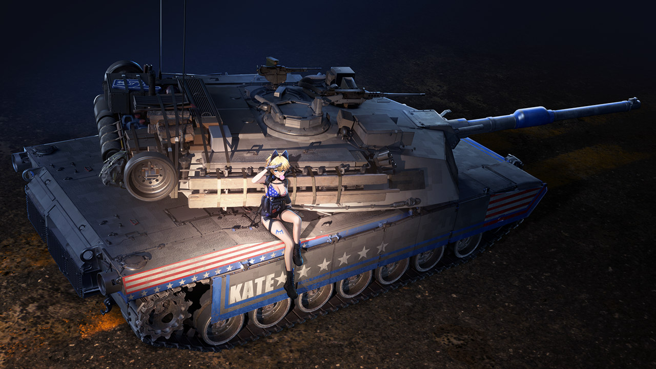 - M1A1 HC 戦雷乙女仕様(アメリカ、ランクVII、プレミアム) -20日間のプレミアムアカウント - 2,500ゴールデンイーグル - ユニークカモフラージュ:「ケイト」 - ユニークタイトル:「ケイト推し(Kate’s fan)」 |