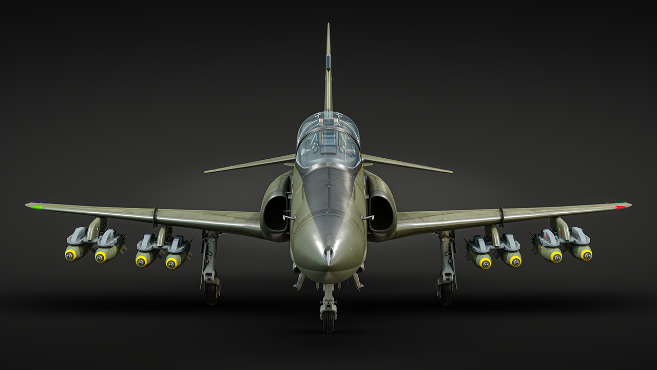 ホーク 200は、ホークファミリーにおいて近代化改修が行われた単座の機体です。軽量のマルチロール機を求める国々への輸出が主な目的であり、本派生型は機首に25mm ADEN機関砲2門を内蔵しています。さらに、中心に沿ったラックに吊り下げられる30mm ADENガンポッドを装備することも可能です。内部には、アフターバーナー非搭載のロールス・ロイス(Rolls Royce)社製アドーアエンジンを搭載しており、これはジャギュアのエンジンと同じファミリーですが、再燃焼装置だけがありません。本機は、コックピットに優れたHUD(ヘッドアップディスプレイ)を備えており、操縦するパイロットの負担を軽減します。亜音速ではあるものの、非常に機敏で機動性に優れるため、適したパイロットが搭乗すると危険な小型機となり得ます!