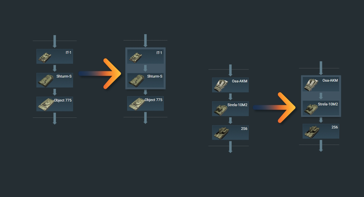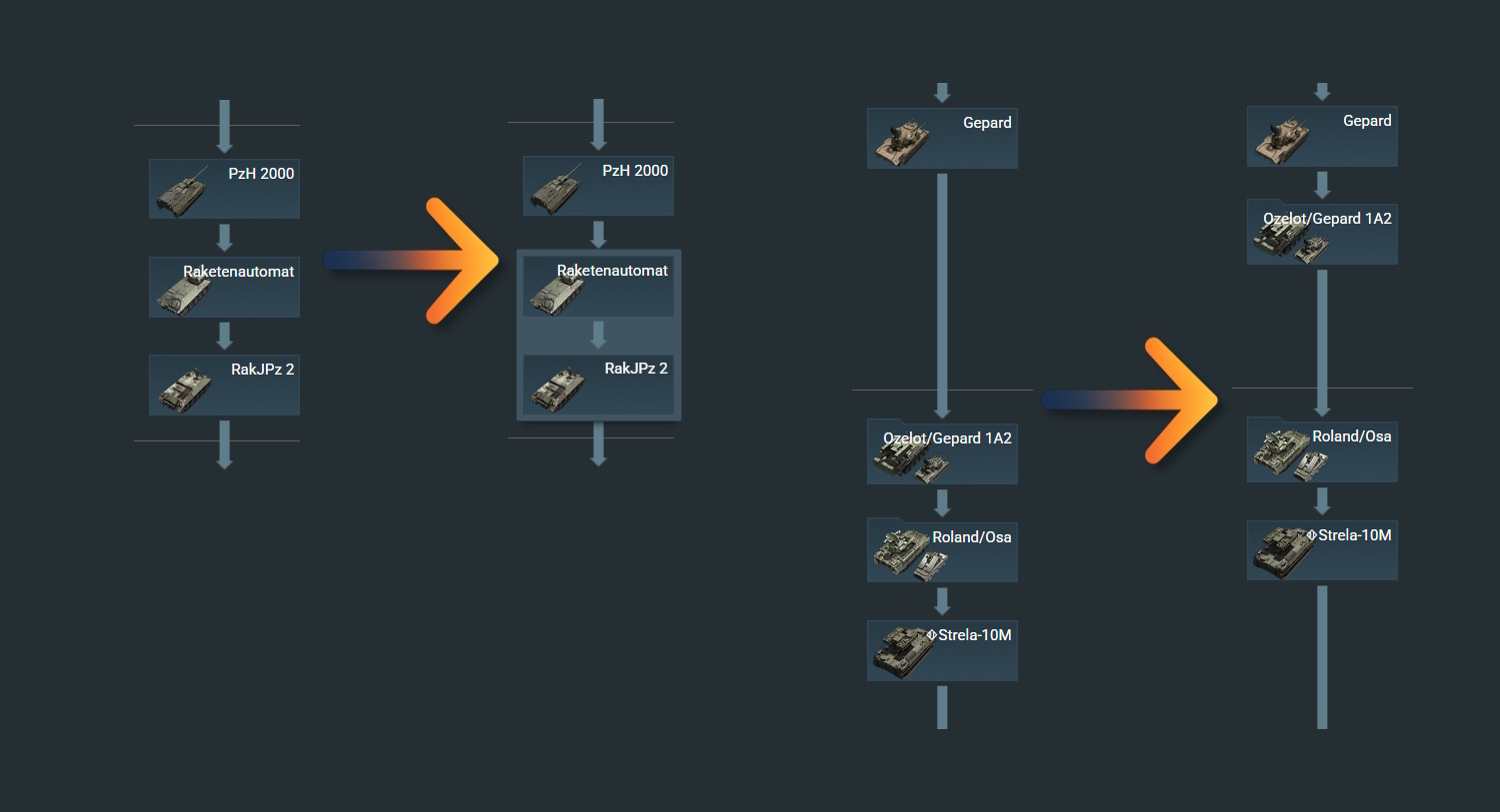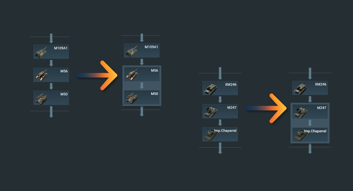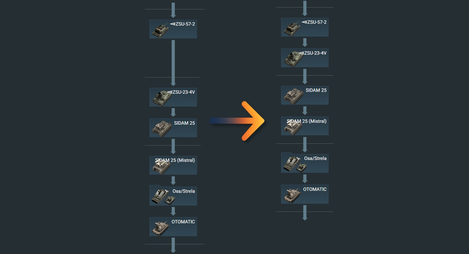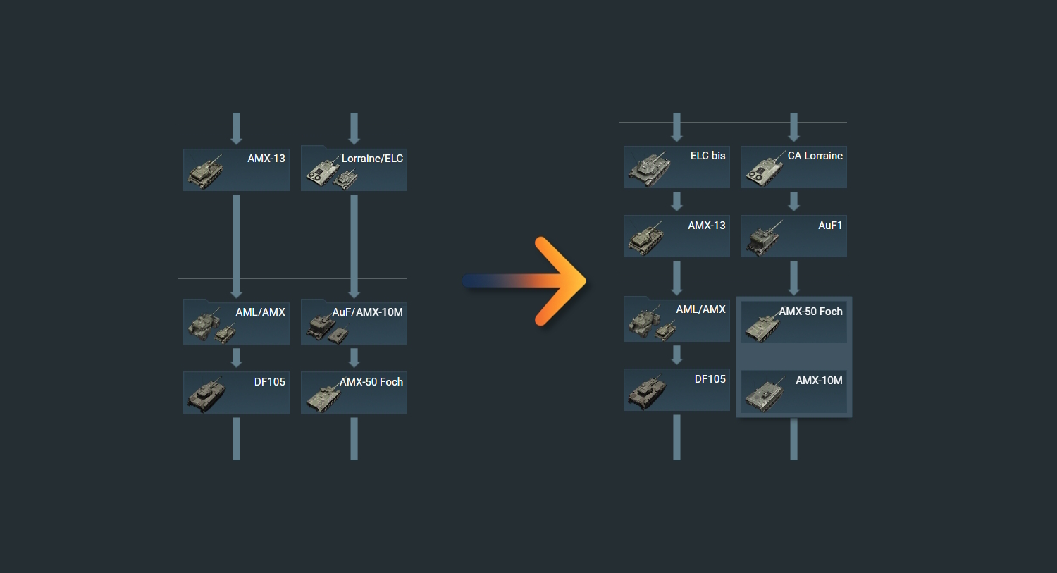 私たちは、今後の変更内容を事前に発表することで、現時点でゲーム内の研究経路を計画する機会を皆さまに提供し、陸軍ツリーが今後どのように変化するのかを事前にご確認いただけるように発表しました!