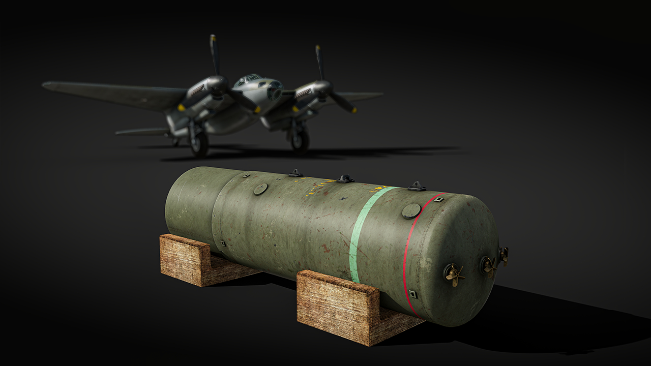 銃砲類がなくても問題ありません!この「モッシー」(モスキートの愛称)には切り札があります。それは、巨大な爆弾です!モスキート B Mk XVIは爆弾倉が拡張されたことで、有名なH.C 4,000ポンド ブロックバスター爆弾(または「クッキー」爆弾とも呼ばれる)を格納することができます。この爆弾は、ゲーム内ではすでにウェリントン、ランカスター、リンカーンなどの爆撃機で使用できますが、これらの低速で鈍重な爆撃機は敵の格好の餌食になってしまうことがあります。一方で、モスキートは素早く侵入し、より正確な爆撃を行うことができる上、十分な速度で危険地帯から脱出することも可能です!そのため、本派生型は皆さまの地上部隊ラインナップにおいて、近接航空支援に最適な非の打ち所のない戦力となるでしょう。クッキーをあげる!あなたにもクッキーを!皆さまにクッキーを届けましょう!クッキー爆弾に加えて、最大500ポンドの通常および徹甲爆弾、さらにはRP-3ロケット弾や1,000ポンドのアンクル・トムロケット弾も搭載可能です。