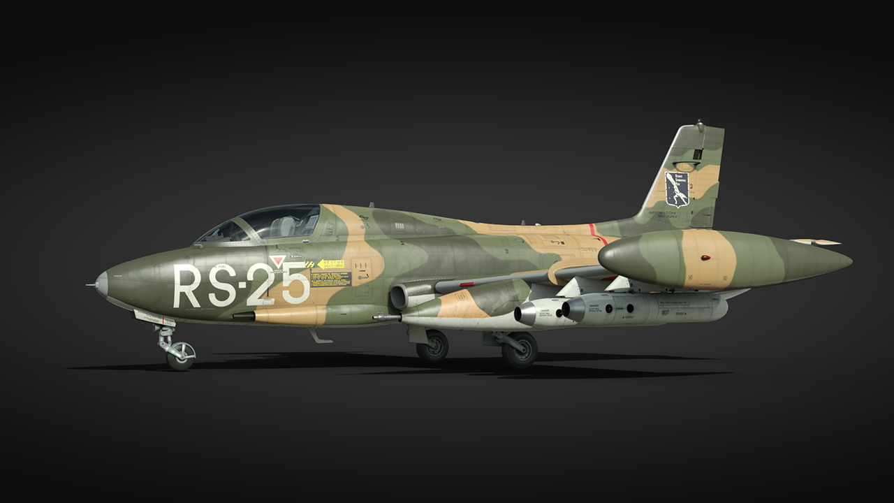今回『War Thunder』に追加される派生型は、攻撃機型に改造されたMB-326Kです。他の初期のジェット機と同様にMB-326Kは亜音速ですが、積載量が多い状態でも低高度において700km/h以上の速度を容易に維持することができます。さらに、本機は素晴らしい操縦性と優れた機動性を備えており、これは攻撃機には不可欠な要素です!