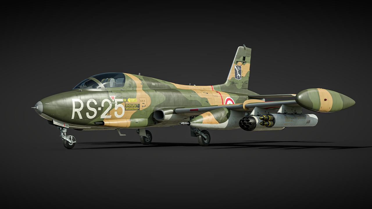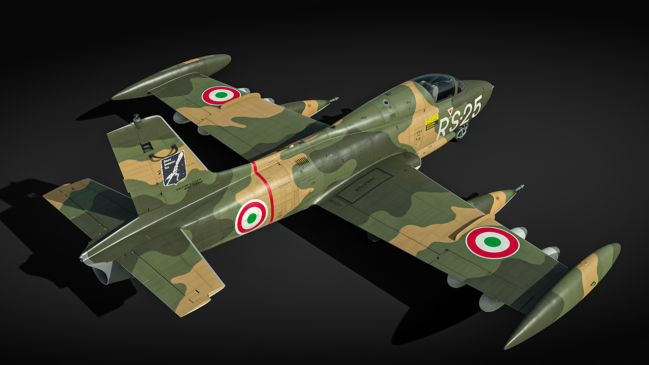 MB-326Kがイタリア空軍ツリーのランクVの先頭に追加され、多くのパイロットの皆さまにとって初めて出会うジェット機となるでしょう。攻撃機として、MB-326Kは混合戦における強力な追加戦力となり、さまざまなラインナップにうまく適合するでしょう。航空戦では、豊富な兵装を用いて地上目標や基地を破壊するだけでなく、強力な正面武装と素晴らしい機動性のおかげで、敵機とも効果的に戦闘が行えることから、本機はジェット戦への入門機として非常に強力で扱いやすい機体と言えるでしょう。