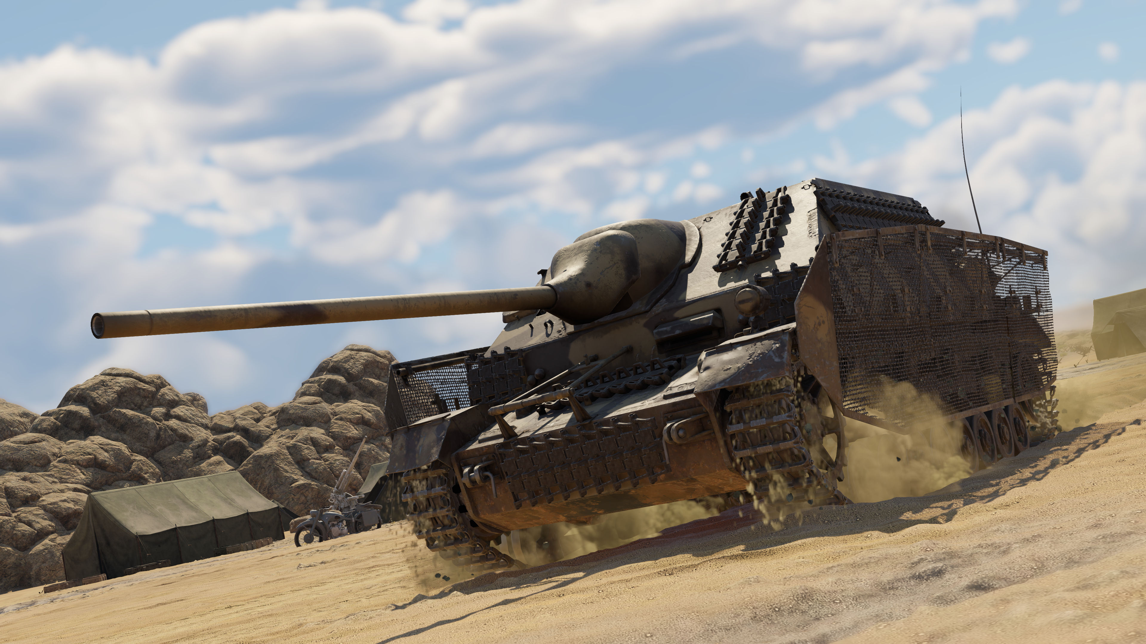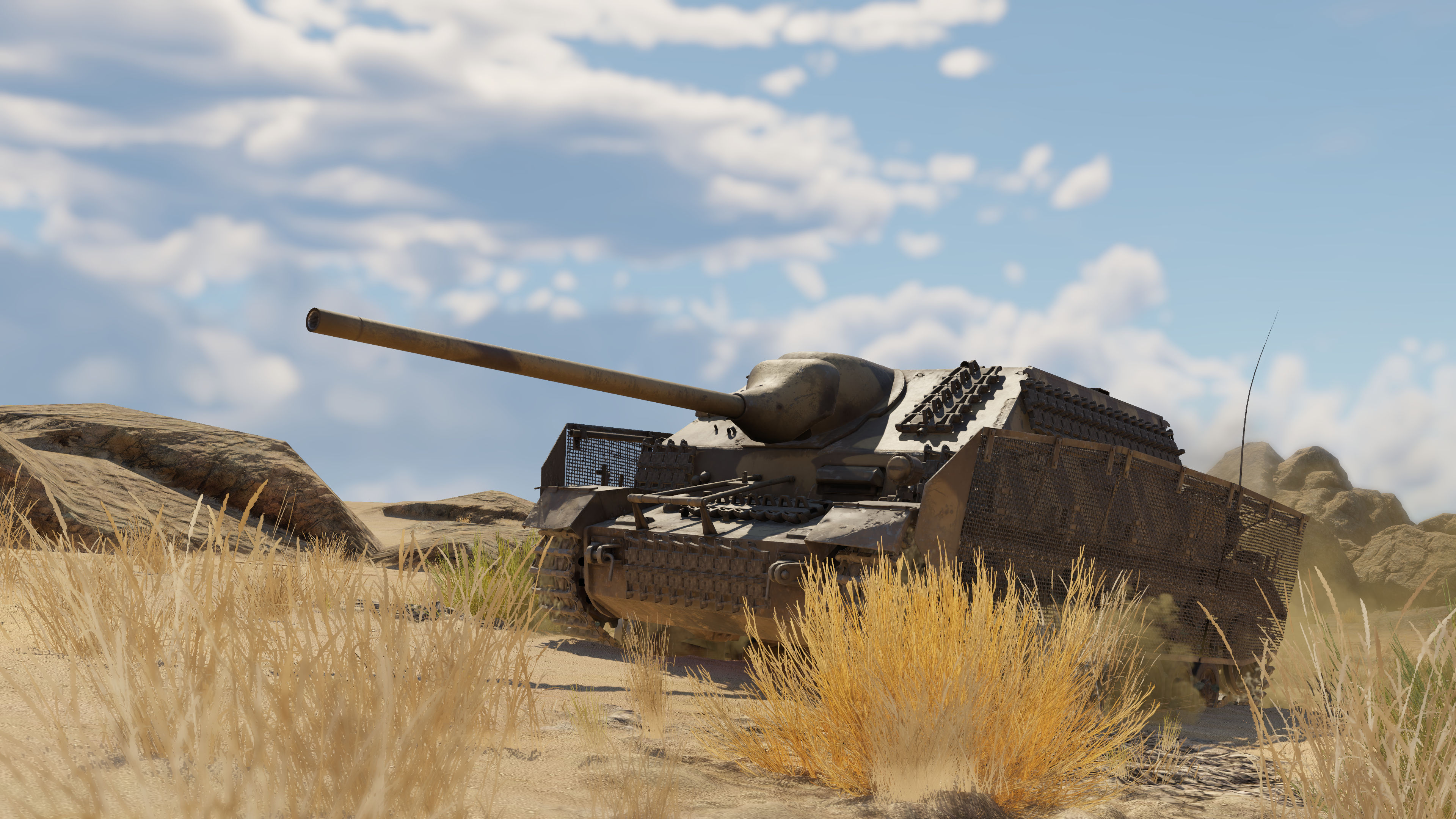 ・IV号戦車/70(A)は、敵戦車にとって非常に危険な存在です。機動性と正確性を備えた本戦車の砲は、発射速度が高く装甲貫通力も優れているため非常に強力です。適切な位置取りをし、脆弱な平らな装甲板を隠すことができれば、戦果を積み上げることができるでしょう!