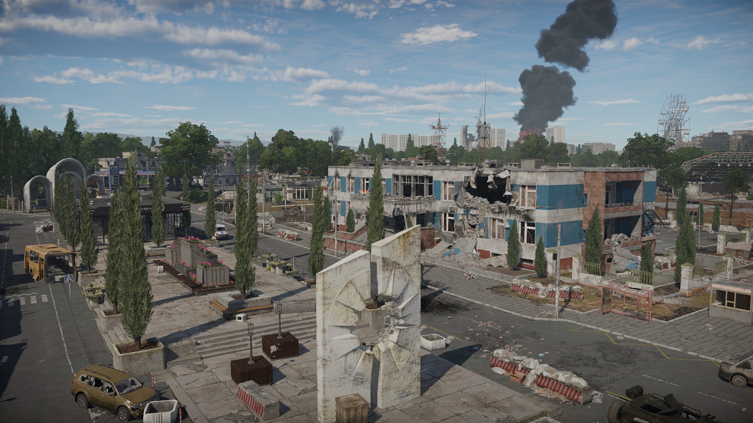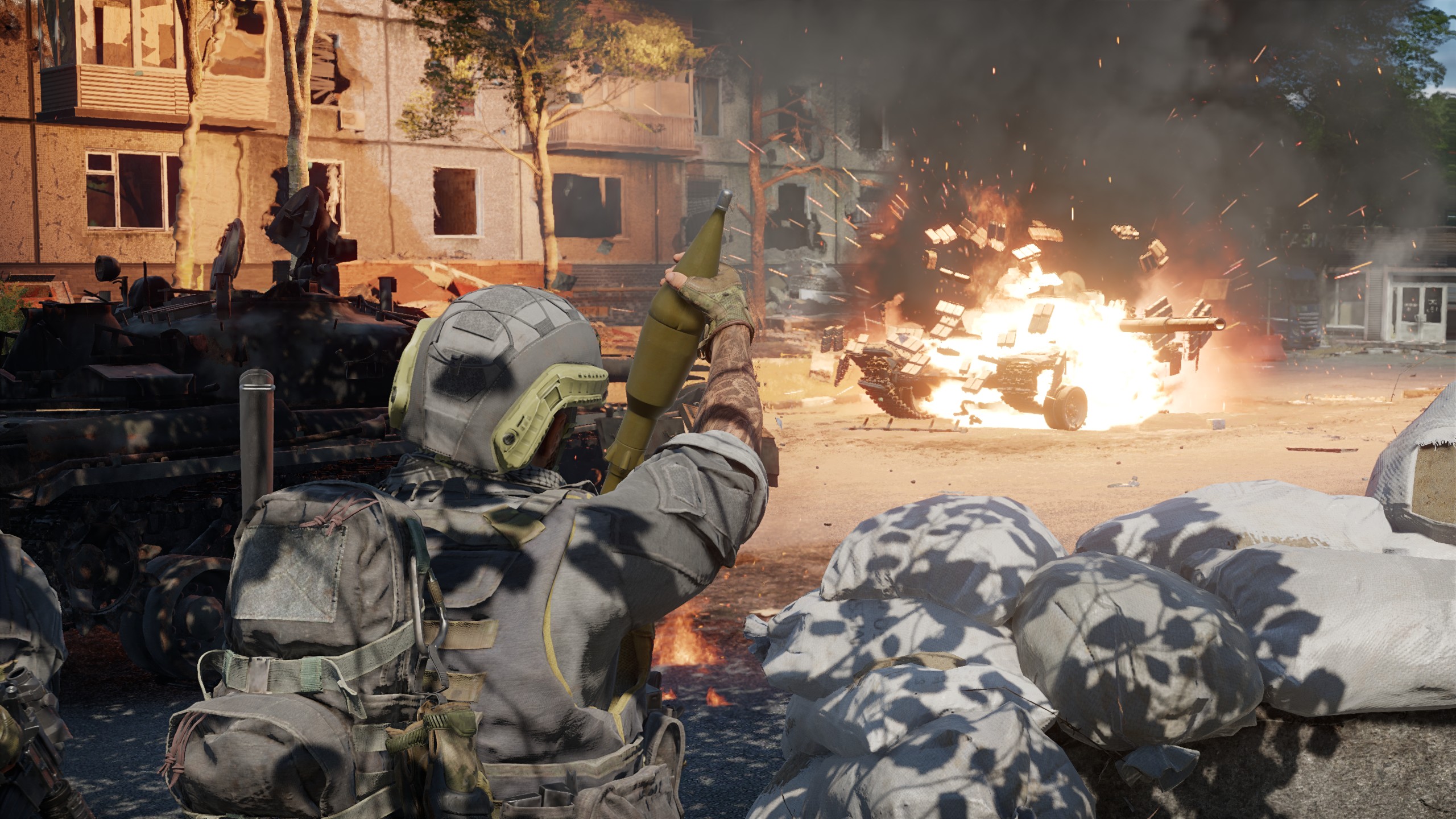 「グラニトグラード(Granitograd)」は、歩兵、地上車両、航空機のための新しいロケーションです。東ヨーロッパに位置し、インタースラーヴィク語で書かれた標識や碑文が特徴です。クローズドベータテスト(CBT)期間中のバトルは、「支配」モードで行われ、兵士および兵器が2つのチームに分かれ、ロケーション内の3つの地点(車両置場、学校、ショッピングモール)の支配をめぐり戦います。グラニトグラードにはさまざまな経路と無数の遮蔽物が用意されています。歩兵部隊は、建物内の複数の階に展開することができ、屋上に登ることもできます。一方で、装甲車両は砲撃や体当たりなどでフェンスや瓦礫を突破し、新たな経路を切り開くことが可能です!