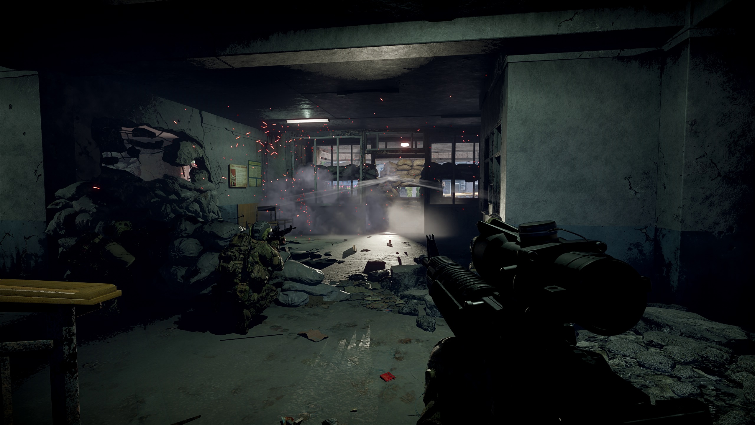 支配モードの主要な目的は、複数階建ての目標の建物を占拠し、保持することです。各階を制圧し、遮蔽物を利用しながら防御態勢を整えましょう。戦車や歩兵戦闘車も一部のコントロールエリアを占拠することができますが、そういった車両は市街地での近接戦闘においては脆弱です。これら車両の主な役割は、味方の支援と敵車両の無力化です。各目標の建物には、弾薬および爆薬を補給するための箱が防御側・攻撃側両方に設置されています。