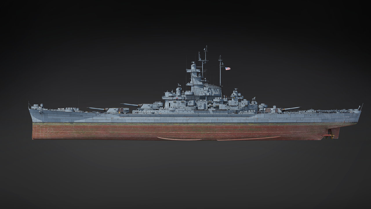 『War Thunder』では、USS サウスダコタは大型の砲塔3基に9門の強力な406mm砲を装備した強力な主武装を誇ります。副武装は、127mm連装両用砲に加え、40mmおよび20mmの機関砲で構成された驚異的な数の対空兵装を搭載しています。USS サウスダコタは、独特な間隔パターンと戦略的に傾斜した主装甲帯により、卓越した防御力を誇ります。本艦はヴォート社OS2U キングフィッシャー観測機を2機搭載し、翼下に小型爆弾も懸架可能です。サウスダコタは非常にバランスが取れ、生存性の高い長距離戦闘用戦艦ですが、その欠点は遅い速力と弾道特性が不十分な点にあります。