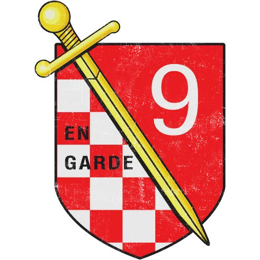 アメリカ海軍 第9駆逐戦隊の記章。この戦隊は、1920年に初期の4本煙突の駆逐艦で初めて編成され、1930年に一時的に解隊されるまで活動しました。その後1937年に再編成され、USS デイヴィス、USS モフェット、USS サマーズを含むポーター級およびサマーズ級駆逐艦が配備され、大西洋と太平洋の両方で活動しました。第二次世界大戦後も、朝鮮戦争や砂漠の嵐作戦など多くの作戦に参加し、現在はアーレイ・バーク級を運用しています。戦隊の記章は海軍の軍事力と名誉を表現しており、有名な「アンガルド(En garde)」というフレーズは「戦闘準備せよ!」という意志を表しています。第168戦闘機航空連隊グリゴリー・コグルシェフのパーソナルマーク