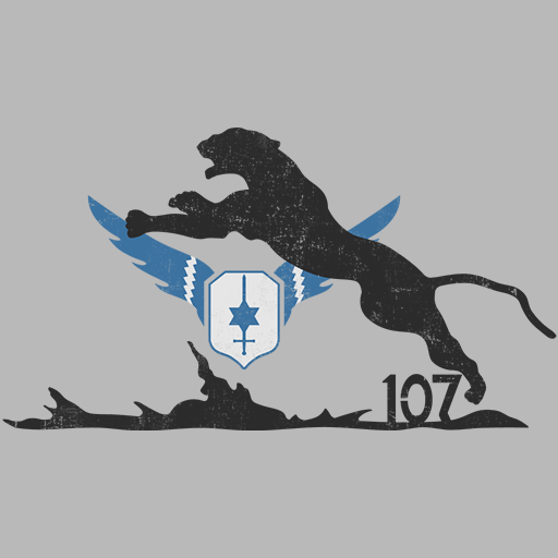 イスラエル空軍 第107飛行隊 作戦訓練部隊(Operational Training Unit:OTU)の記章。第107飛行隊は、急速に拡大するイスラエル空軍において新人パイロットを迅速かつ効果的に訓練する必要性に対応するため、1953年2月にラマト・ダヴィド空軍基地で編成されました。この飛行隊は少なくとも39機のMk IX スピットファイアを保有し、1953年から1954年にかけて21人の戦闘機パイロットの育成に成功しました。本飛行隊はこの形態で1956年にスピットファイアが退役するまで活動しましたが、数年後にミーティアとウーラガンを運用する飛行隊として再編成されました。OTUの記章には、イスラエル空軍の記章を飛び越える虎のシルエットが描かれており、飛行隊が保有するスピットファイアの数機のエンジン排気管の後方下部に描かれることが多くありました。