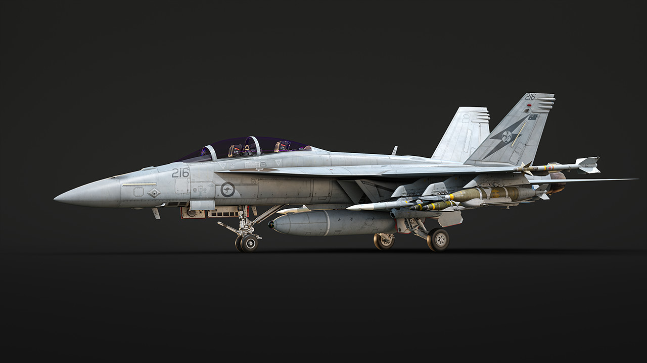 どうも皆さん!今回は、有名な「ライノ」(あるいは人によっては「スーパーバグ」)の複座型である王立オーストラリア空軍仕様のF/A-18F スーパーホーネットを紹介します!空対空戦闘用に大量のAMRAAM(Advanced Medium-Range Air-to-Air Missile:先進中距離空対空ミサイル)で完全武装することも、多種多様な誘導兵器で近接航空支援向けに装備を整えることも可能な本機は、イギリス空軍ツリーにおいて、まさに万能のツールボックスとして活躍してくれるでしょう!