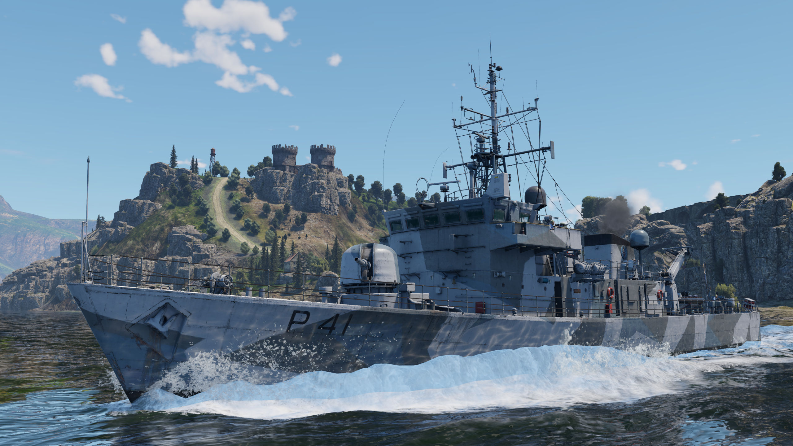 ・ル・オルラ(ランクIV)は、信頼性の高い76mmオート・メラーラ砲を主砲とし、2挺の発射速度の高い20mm機関砲がこれを補完しています。このコルベットは、接近してくる航空機を徹底的に撃退し、味方を援護し、戦略的拠点を防衛する準備が整っています!